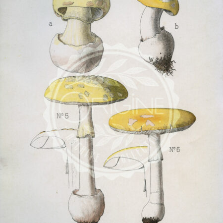 Originale · Planche mycologique du XIXᵉ siècle • Rolland . Amanita mappa et Amanita junquillea