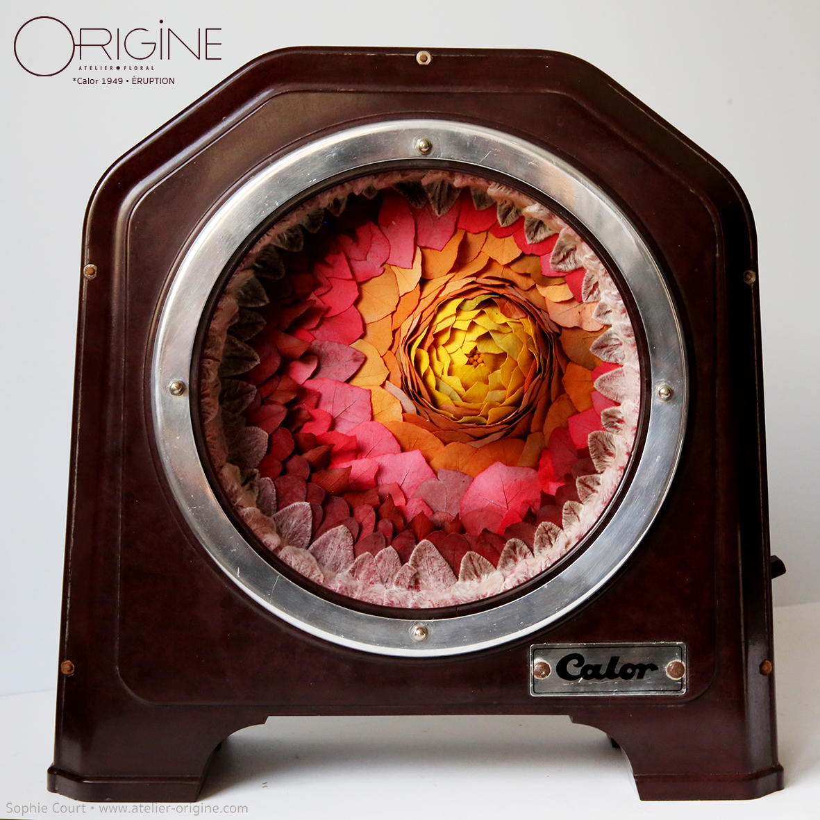 De cette création semble se libérer une éruption végétale puissante qui évoque la chaleur que le radiateur vintage produisait autrefois !
