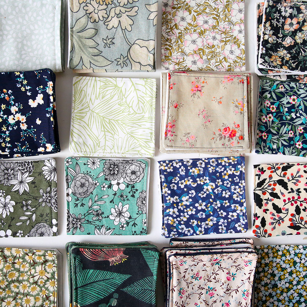Miroir & sa pochette en tissu FLEURS
