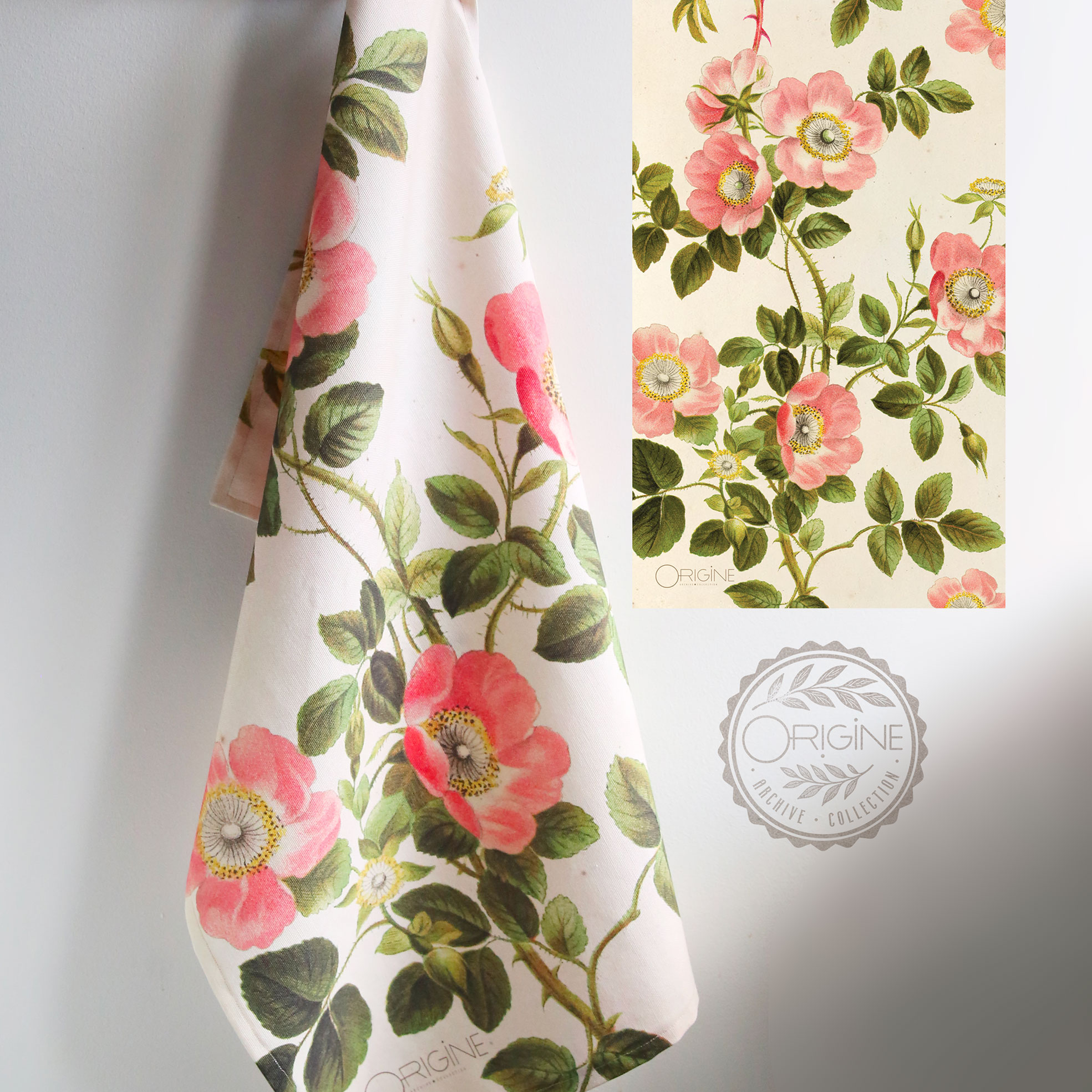 Les visuels sont ensuite imprimés en France sur toile 100 % coton (230 g/m²), à l’aide d’encres certifiées OEKO-TEX®, garantissant un rendu écologique, durable et fidèle aux nuances d’époque.